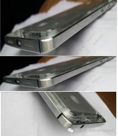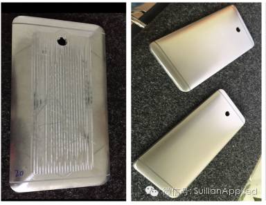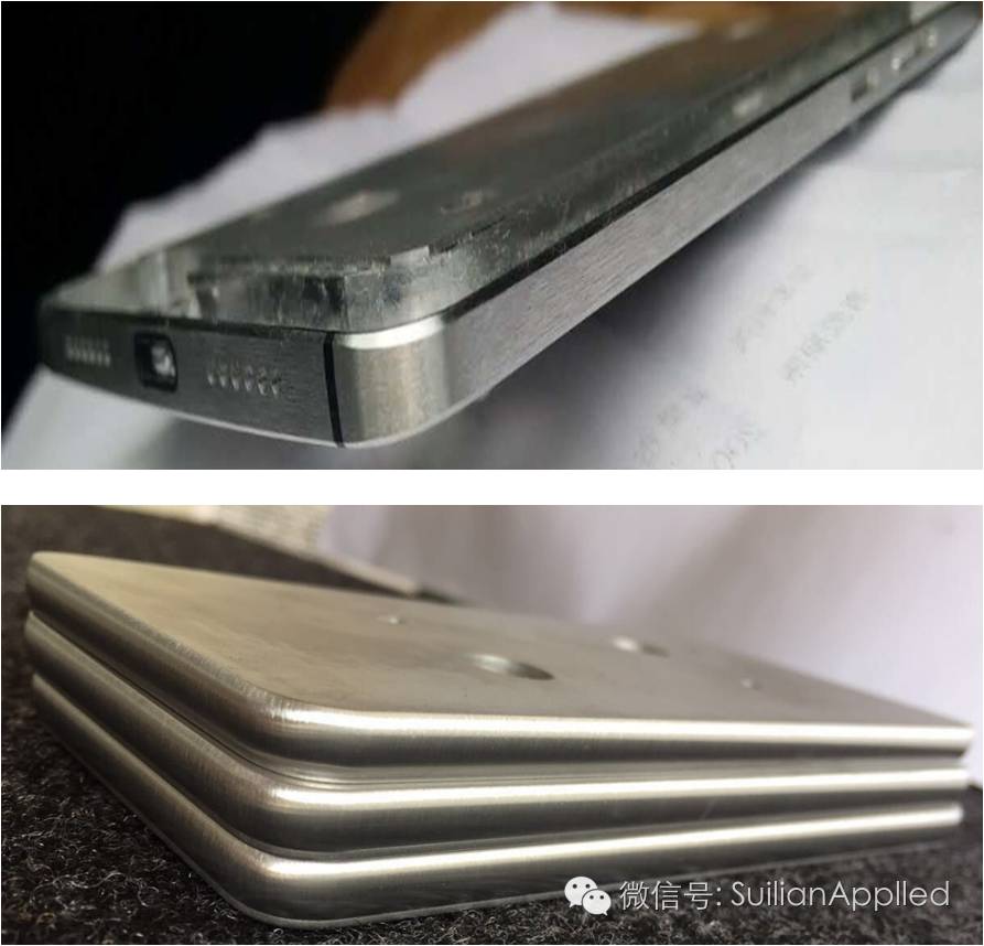 图:手机边框横纹拉丝(上)和竖纹拉丝效果