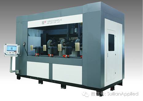 7163银河官网自动化SL-24NC-NM 平行同步手机壳数控打磨抛光机平行移动工作台同步2轴,平行移动磨轮头4轴,实现了在每个工作周期内可以完成4个工件的抛光或4个工件的打磨。