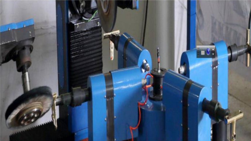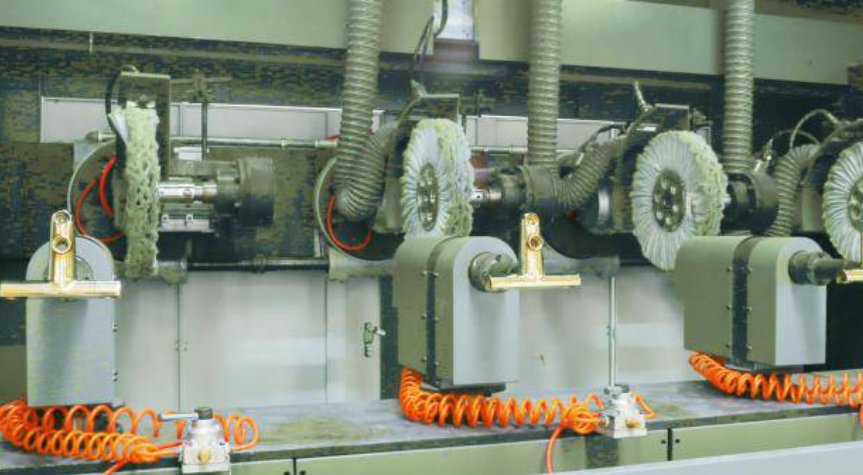 该设备适用于抛磨各种形状不规则的复杂工件和各类自由曲面异形,优越的设计和性能使其成为多个行业的通用设备,特别是水龙头和浴室配件行业。 平行移动工作台同步2轴,平行移动磨轮头4轴,实现机床主轴的直线、圆弧插补功能。同时4组对应的抛磨头和4工件,工件自转可以参与插补切削。工件装卸快速,大大提高了工作效率。打磨抛光设备上工装夹头实现可编程插补技术,至此所有的抛光单元移动均实现可编程数控技术,该技术的运用提供了一全新的工作系统,整合在多个单一的工艺程序一致性抛光。 平行移动工作台同步2轴,平行移动磨轮头4轴。双抛光周期:在每个工作周期内可以完成4个工件的抛光或4个工件的清光,可编程24个轴(或多NC 轴 )智能控制系统,控制系统是一个总线控制系统,多通道数据管理优点。仅用一套高端CNC控制即可通过高速 EtherCAT以太网总线控制IO 及所有伺服,性能卓越,结构模块化,对各种操作系统、触觉系统、视觉系统和其他系统的数据采集、分析,并进行实时控制的处理。