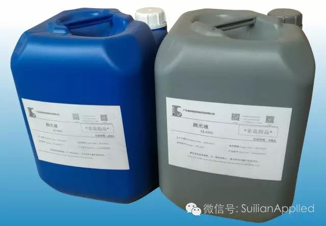 一种化学机械抛光技术。抛光液是一种水溶性抛光剂,具有良好的去油污,防锈,清洗和增光性能,并能使金属制品超过原有的光泽。本产品性能稳定、无毒,对环境无污染。